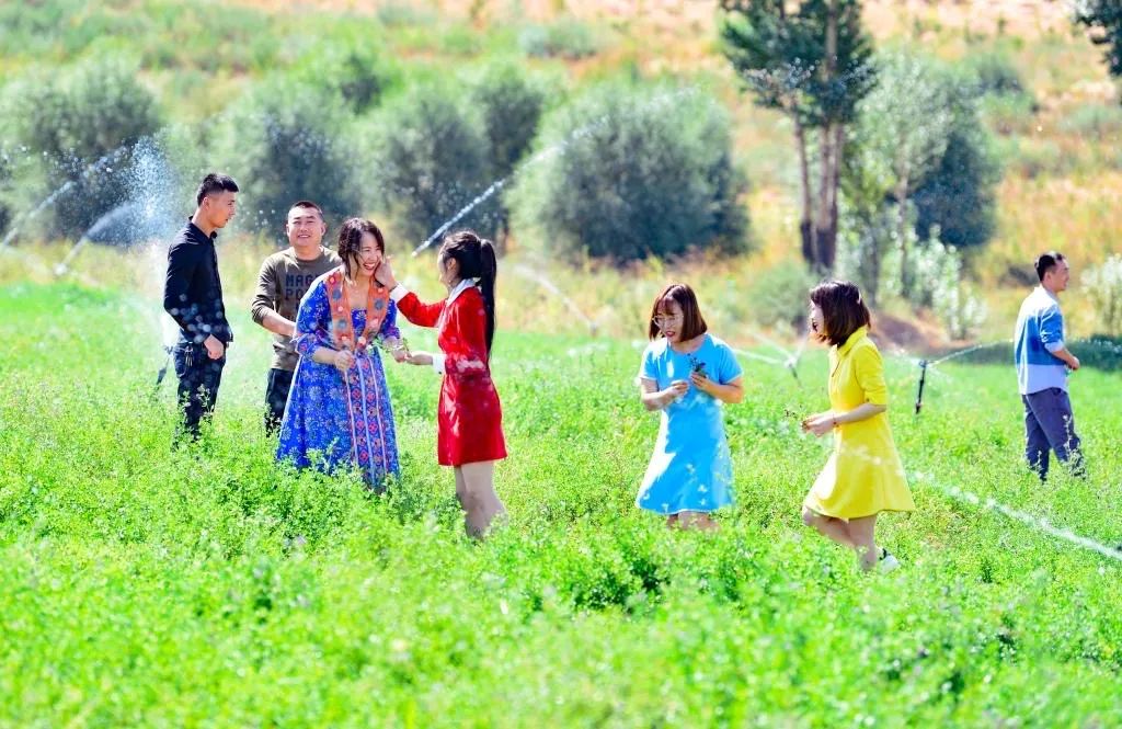 2021年9月14日,游客在鄂尔多斯市伊金霍洛旗纳林陶亥镇一个采煤沉陷区通过生态修复建成的景区内游玩。