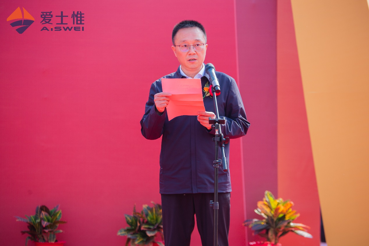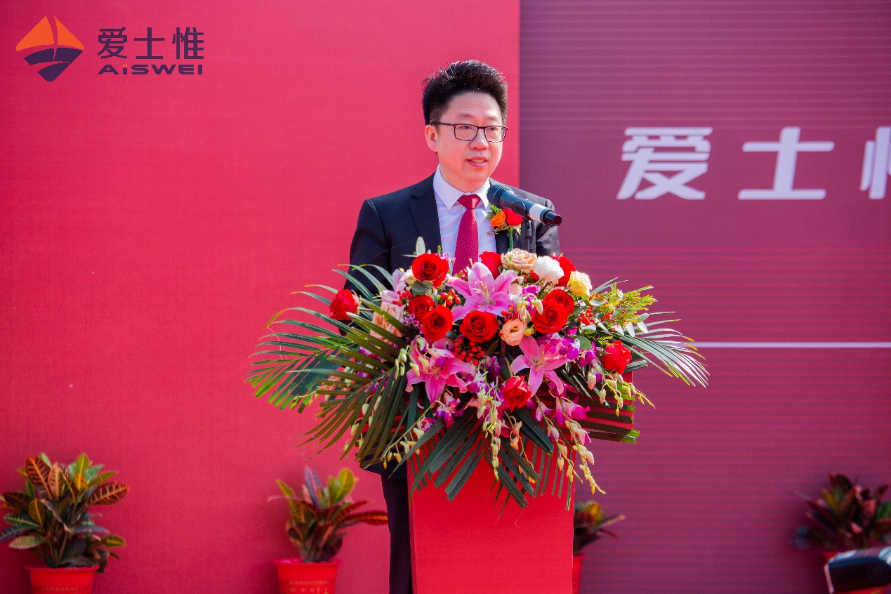 扬中经开区党工委书记周鹤军做开场致辞。他表示,爱士惟是经开区优秀企业的典型代表,经过十多年的发展,企业规模不断壮大。今天的项目开工,标志着爱士惟新一轮的开疆拓土正式启动,也标志着经开区新能源产业又一颗新星即将冉冉升起,也必将为经开区、乃至全市高质量发展提供强有力的支撑。