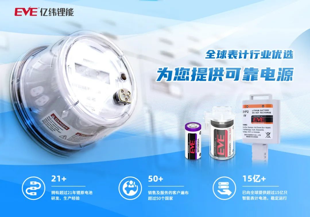 亿纬锂能提供面向16年寿命的智能电表电源解决方案,包括长寿命时钟电池方案、长寿命抄表电池解决方案以及长寿命储能器件电源方案,实现超宽温度工作,稳定的高工作电压平台,适合长时间放电应用。