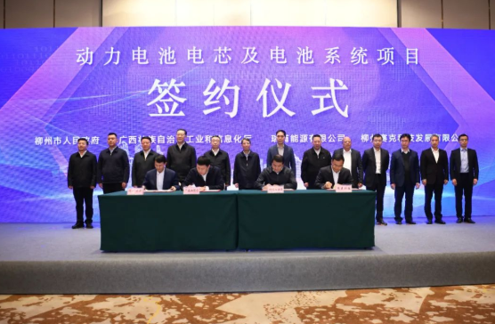 广西自治区工信厅副厅长汪东明、柳州市副市长汤振国、瑞浦能源有限公司董事长曹辉、柳州赛克科技发展有限公司总经理廖鸿胡分别代表四方签署《动力电池电芯及电池系统项目合作协议》;柳州市柳东新区管委会主任刘度量、瑞浦能源有限公司董事长曹辉、柳州赛克科技发展有限公司总经理廖鸿胡分别代表三方签署《电芯公司和电池系统公司项目投资协议》。