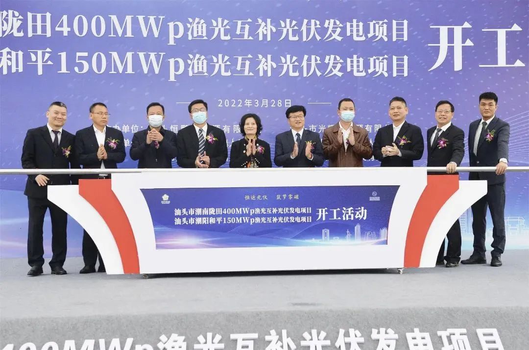 罗浮山下四时春,卢橘黄梅次第新。3月28日上午,随着全场挖掘机和运输车同时鸣笛,由正泰新能源提供EPC总承包服务的汕头潮南陇田400MW与潮阳和平150MW渔光互补光伏发电项目开工仪式隆重举行。通过“板上发电+板下养殖”,项目可实现“一地两用”,让土地资源立体起来,提高单位面积土地的经济价值。据测算,合计550MW的项目建成后,年均清洁发电6亿千瓦时,相当于每年减少标准煤消耗20万吨,减排二氧化碳60万吨,等同于植树造林34万棵,将成为广东省光伏可再生能源发展的又一标志性项目。