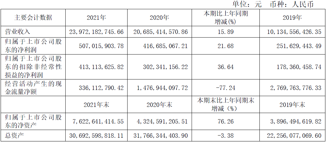 2021年度,上海电气风电实现营业收入239.72亿元,较上年同比增长15.89%,归属于上市公司股东净利润为5.07亿元,较上年同比增长21.68%。报告期内公司新增订单3010.9MW,累计在手订单7945.5MW。报告期内,公司实现销售风机1084台,其中陆上风机384台,海上风机700台。