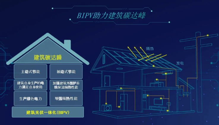 在国家双碳战略目标的宏伟规划下,促进整个社会实现降耗减碳成为现阶段能源事业发展的重任。据了解,和建筑相关的能耗占到社会总能耗的46.7%,建筑减碳已是中国碳达峰的攻坚市场,打造低能耗绿色建筑,将是实现“建筑双碳”的重要路径。BIPV作为一种将光伏与建筑结合的技术,已成为绿色建筑的经典模式,具备节省电网投资、减少土地利用资源、节能环保、适用性高等诸多优点,在建筑降碳减排、推动发电收益增长、实现低碳发展上极具优势。