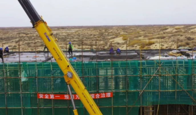 阳春三月,春寒料峭,在奈曼旗明阳智慧能源30万千瓦风电项目升压站工程建设现场,塔吊林立、机器轰鸣,工人们正有序施工。