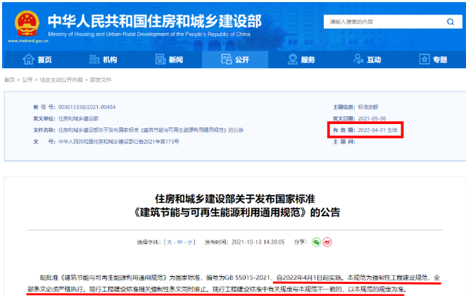 近日,住建部发布的GB 55015-2021《建筑节能与可再生能源利用通用规范》(以下简称《规范》)于2022年4月1日起正式实施,在建筑光伏圈引发广泛讨论。