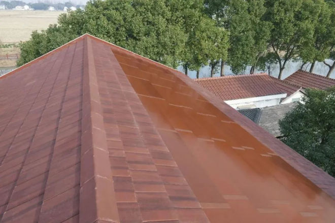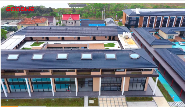 旭日瓦外观风格与传统屋面一致性强,可适配黑色、砖红色建筑屋面需求。