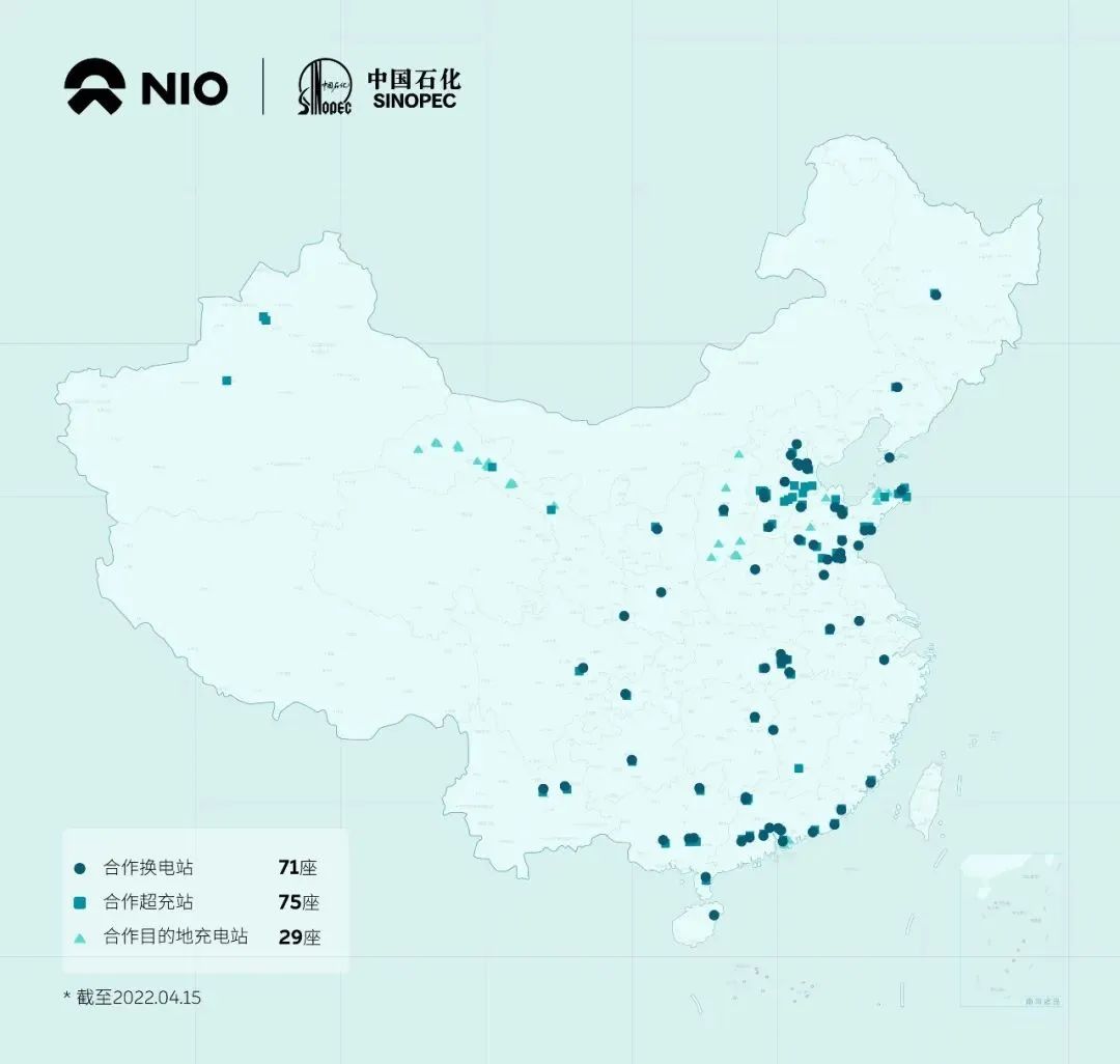 4月15日是蔚来与中国石化签订战略合作协议一周年。当天,蔚来官方称,其与中国石化在过去一年共建了175座充换电站,平均每两天就有一座中石化合作站上线。