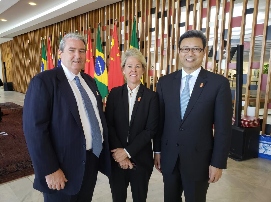 在巴期间,钱智民专程拜会巴西内政部长洛伦佐尼和巴西能矿部部长助理桑托斯。会谈期间,巴西政府高度赞赏国家电投在巴全方位清洁能源合作成果,充分肯定国家电投与西门子在巴开展能源领域第三方市场合作的首次成功尝试,全力支持国家电投发挥在光伏、风电、氢能、综合智慧能源等领域的产业优势和实践经验,依照即将出台的巴西《2020—2030能源发展规划》总体要求,按照近日举行的金砖五国能源部长会议达成的重要共识,推动对巴全方位清洁能源合作行稳致远。