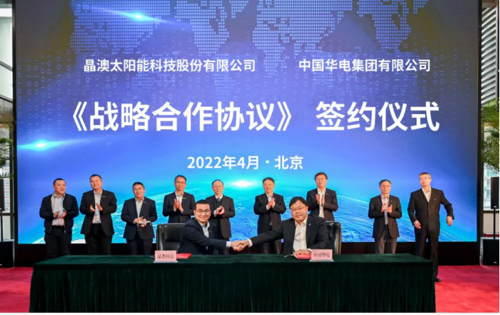 4月1日,晶澳科技董事长靳保芳与中国华电集团党组书记、董事长温枢刚在北京会谈。这场会谈促成了双方的一次重量级合作——晶澳科技与中国华电签署战略合作协议,双方将充分发挥各自在资金、技术、市场、品牌等方面优势,建立双方高层沟通协调机制,在光伏组件供应、项目开发、技术支持、设备服务采购、产业资源和海外市场开拓等方面开展合作。