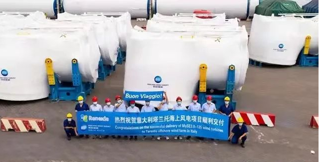 去年8月,明阳方面完成了这批10台MySE 3.0-135风机的制造,于10月在Taranto港交付。