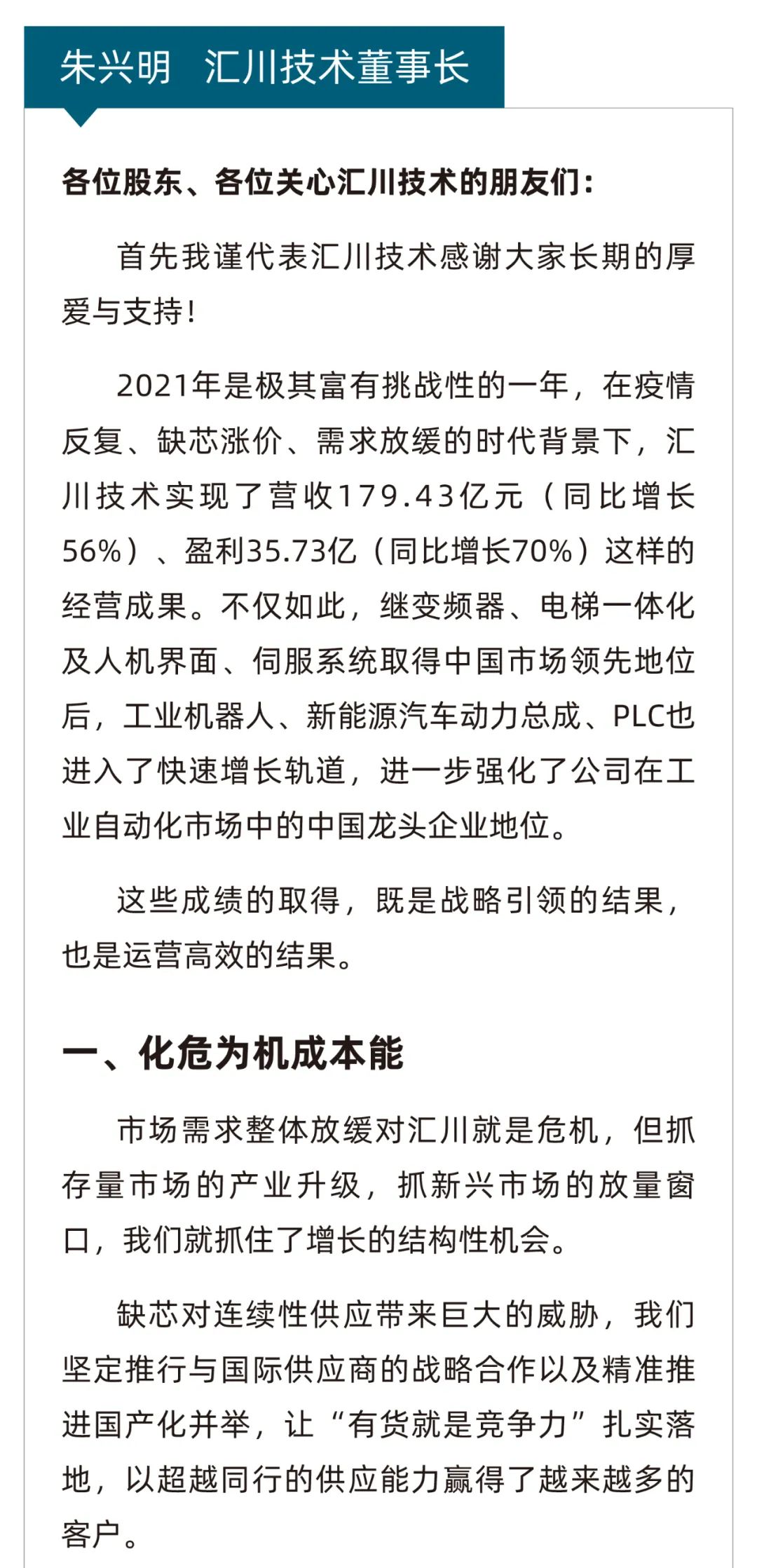 不破不立勇创新!汇川技术发布2021年年报&2022年一季报