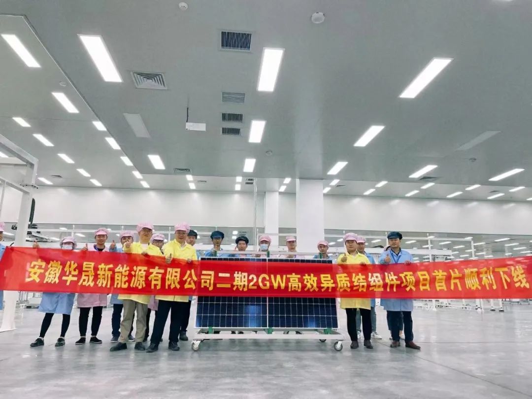 4月25日,华晟二期2GW高效异质结项目首片组件顺利下线。