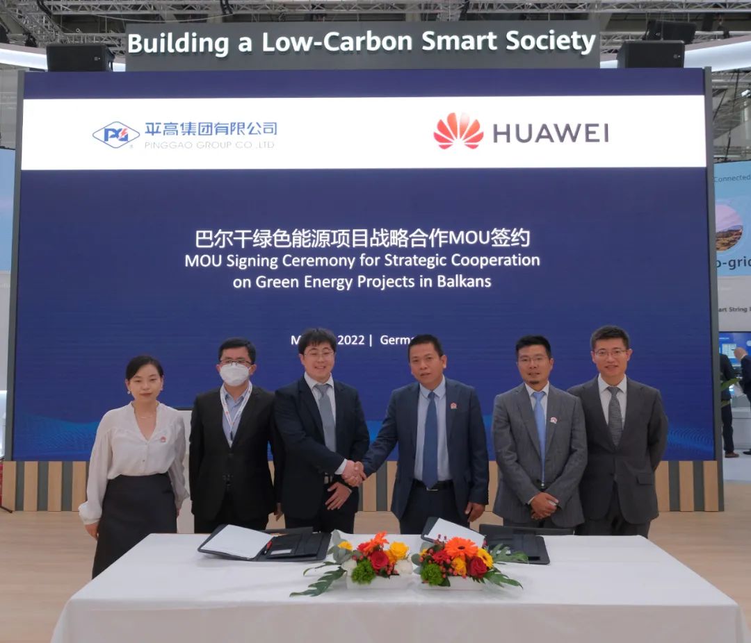 2022 年 5 月 12 日,华为数字能源与平高集团有限公司(以下简称“平高集团”)在Intersolar Europe 2022 华为展台签署合作备忘录。双方将基于“优势互补、合作共赢”的原则,围绕清洁能源的高效开发、智能光伏电站开拓创新等方面进一步加强合作,业务范围涵盖巴尔干地区的希腊、保加利亚和北马其顿等。