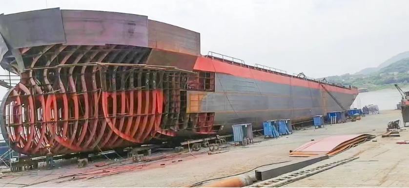 近日,在泸州某船舶公司作业区,搭载潍柴WH20双燃料动力,四川省长江上游首艘LNG双燃料船舶“吉祥2022”正在加紧建造,潍柴双燃料大缸径动力进军四川市场取得新突破。