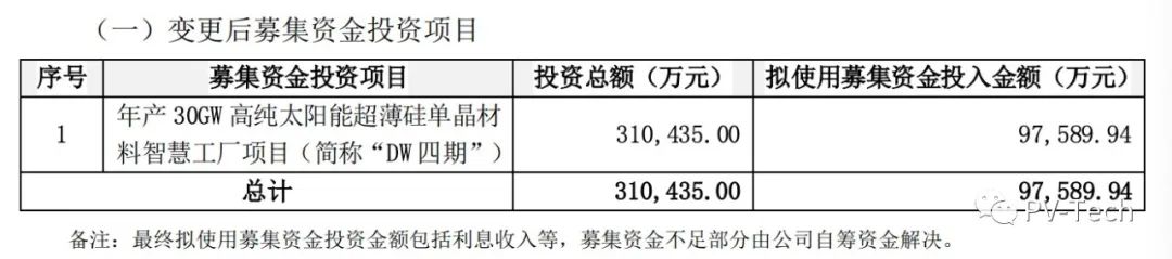 根据公告披露,DW四期项目实施主体为中环股份控股子公司中环应材,该项目投资总额31.04亿元,预计完全达产后,将新增年产30GW太阳能光伏硅片(G12)产能。