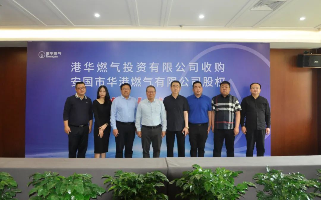 港华集团高级副总裁刘諬霟与出让方安国华港燃气董事长刘福拴共同签署此股权收购协议。港华集团华北区域副总裁张卫东,河北省天然气副总经理潘磊,安国华港燃气总经理李庆佳,港华集团项目投资总监卓婷等人共同见证协议签署。