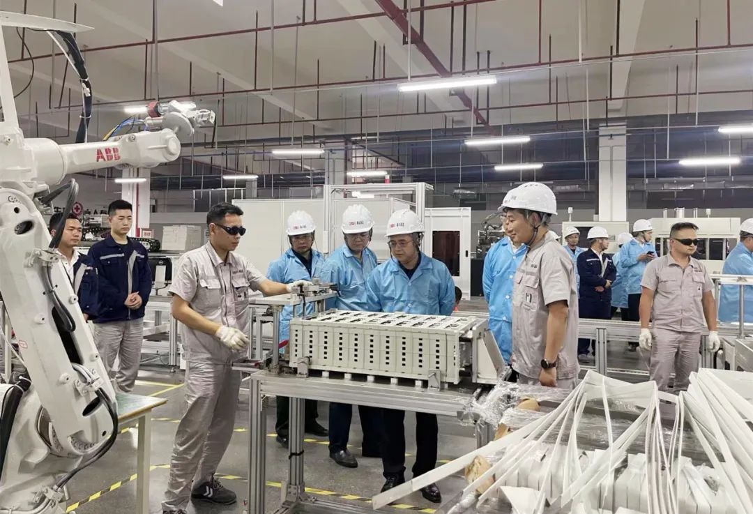 刘标董事长一行先后对宜春储能生产基地的组装调试厂房、生产制造车间、电芯储备仓库、综合办公楼、员工食堂、员工宿舍等进行了现场调研并详细了解生产基地搬迁后的产能恢复、智能化产线投产、精益化管理、疫情防控措施、安全生产经营和员工生产生活等情况,并听取了相关负责人的工作汇报。