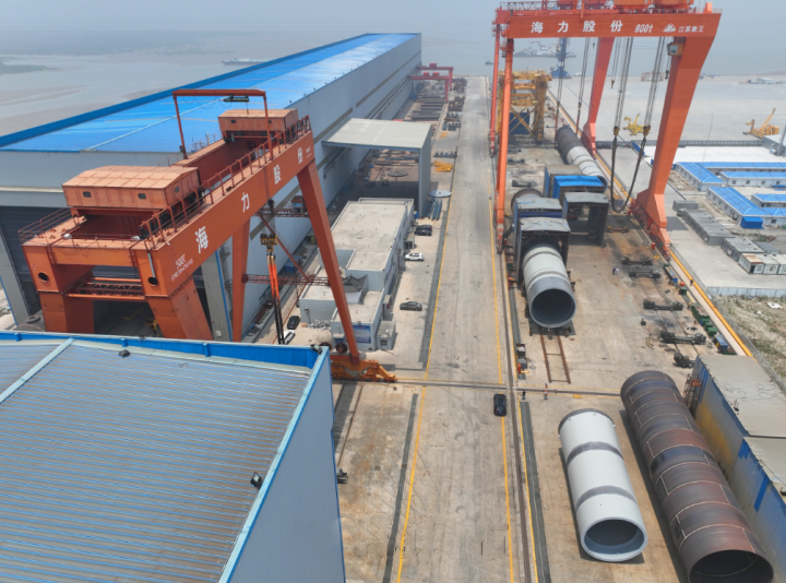 过去,海上风电场建在近海,实现国家“双碳”目标,向深海进军,迎接平价挑战,海力风电的“战法”就是主打产品风机塔筒、海上风机单桩、导管架承载平台从小型化向大型化大踏步跨越。去年,生产4兆瓦、5兆瓦塔筒的海力装备车间,今年长胖了、长高了,变成6.25兆瓦、8兆瓦,最大的做到了10兆瓦以上。