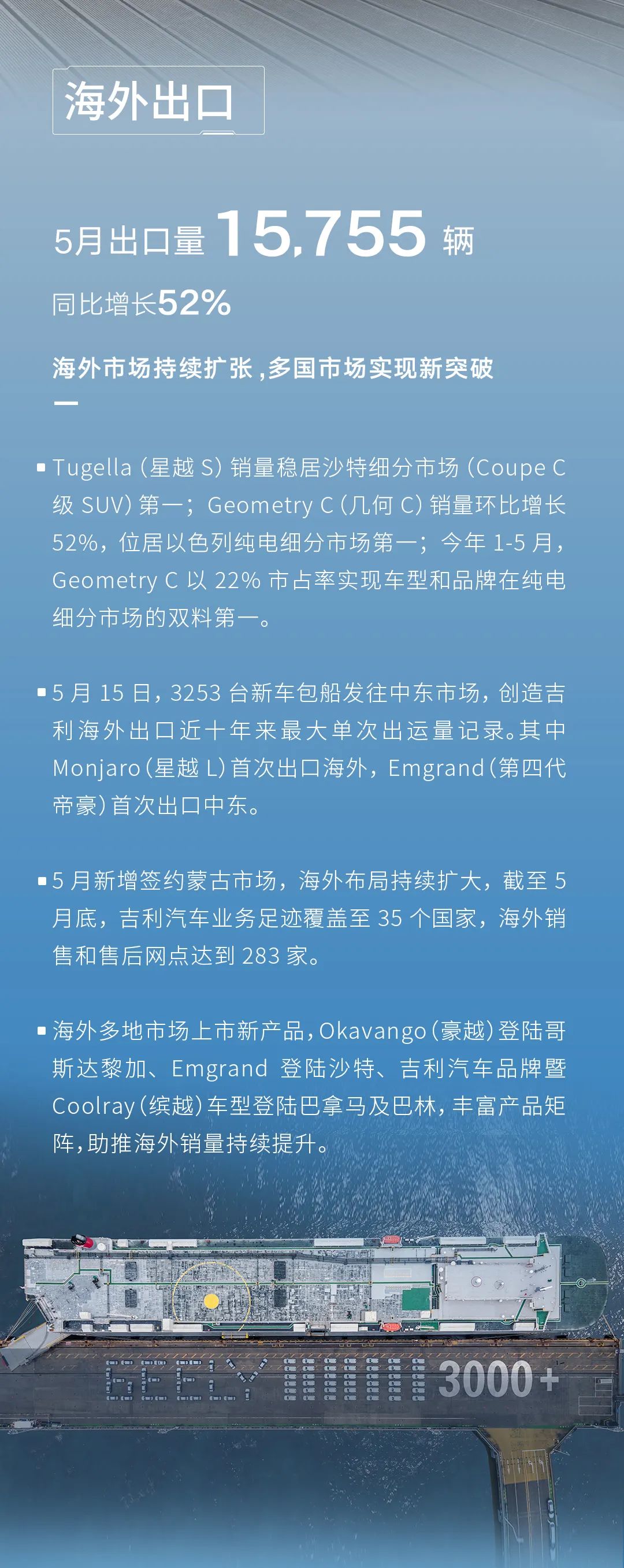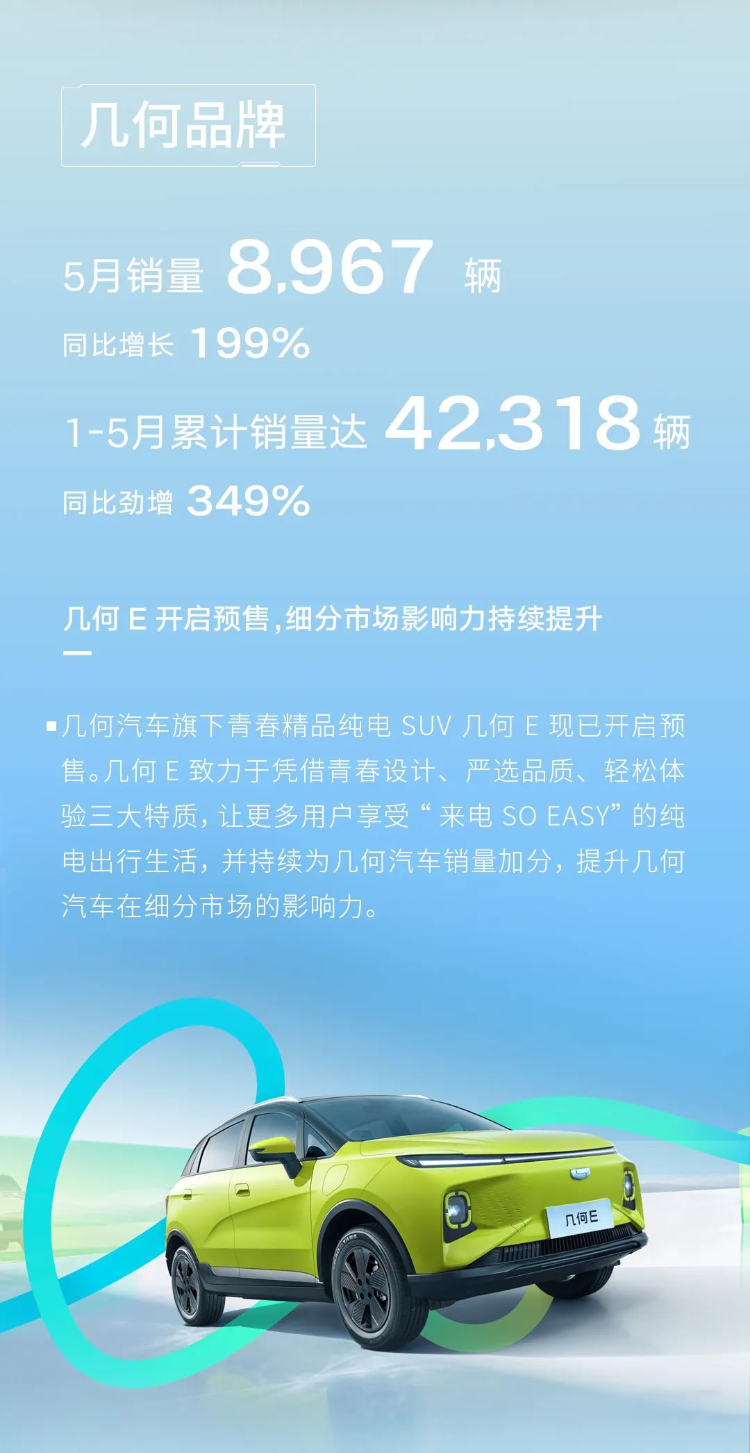 新能源销量同比大涨304%!吉利汽车5月销量达89070辆