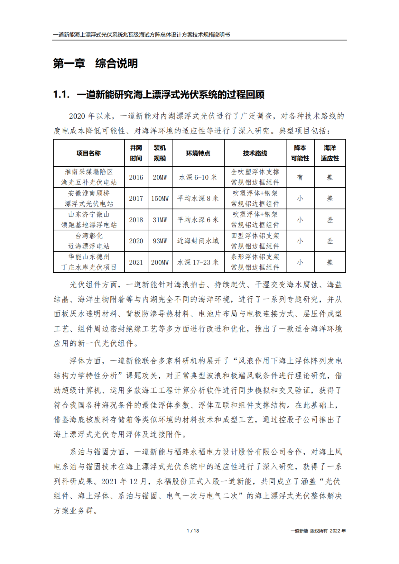 一睹为快!一道新能源编制完成《海上漂浮式光伏系统设计方案》