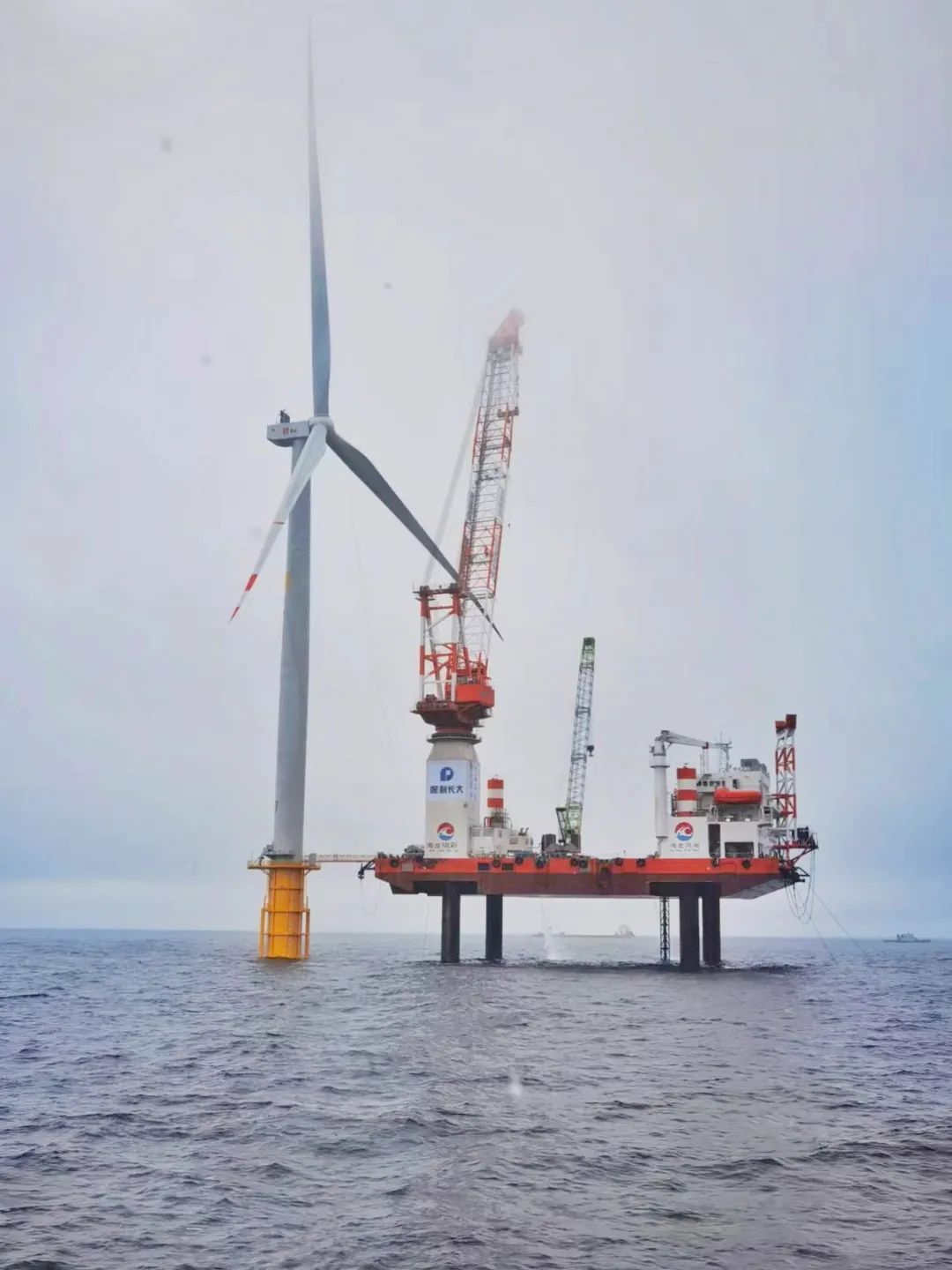 苍南1#海上风电项目是我国第一个海上风电平价项目,也是华润集团国内第一个海上风电项目。项目公司团队在控股领导的大力支持与帮助下,根据项目进度计划,统筹策划、科学组织。为确保首台风机安全、顺利地完成吊装工作,在筹备阶段便与各参建方就风机吊装方案进行多番研讨和论证,对主要吊装船“海龙瑞彩”提前进行插拔试验和分析,对主要施工作业人员进行施工技术和安全交底,过程中严把各项工序环节,细中求进、稳步操作。