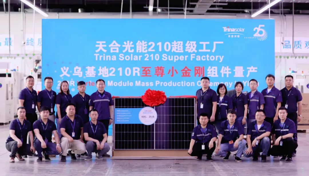 2022年6月22日,全球首批210R至尊组件在天合光能210义乌超级工厂正式量产。210R系列新品预计今年年底产能可达10GW,2023年预计达到20GW+,天合还将根据市场客户不断增长的需求,快速提升供给能力。此次量产仪式标志着天合光能210R组件产能全面展开,基于技术革新的全新一代至尊组件将进一步提速海外出货,为海外用户带来全新升级的绿色科技体验,打造更多零碳光伏屋顶。