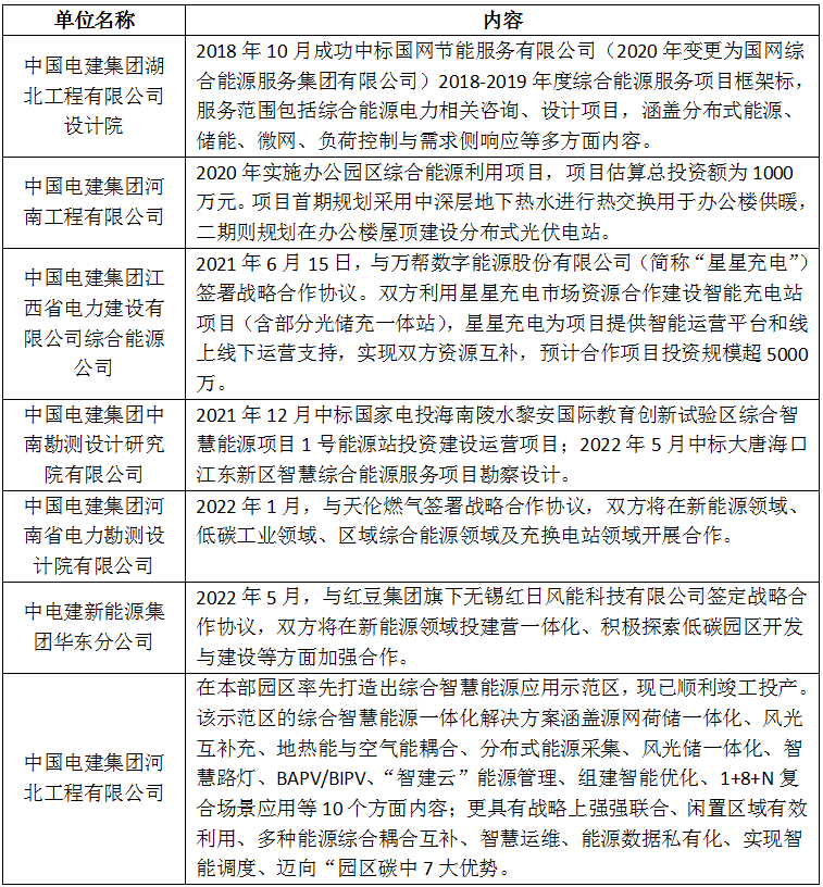 截至目前,中国电建旗下多家单位已涉足综合智慧能源。