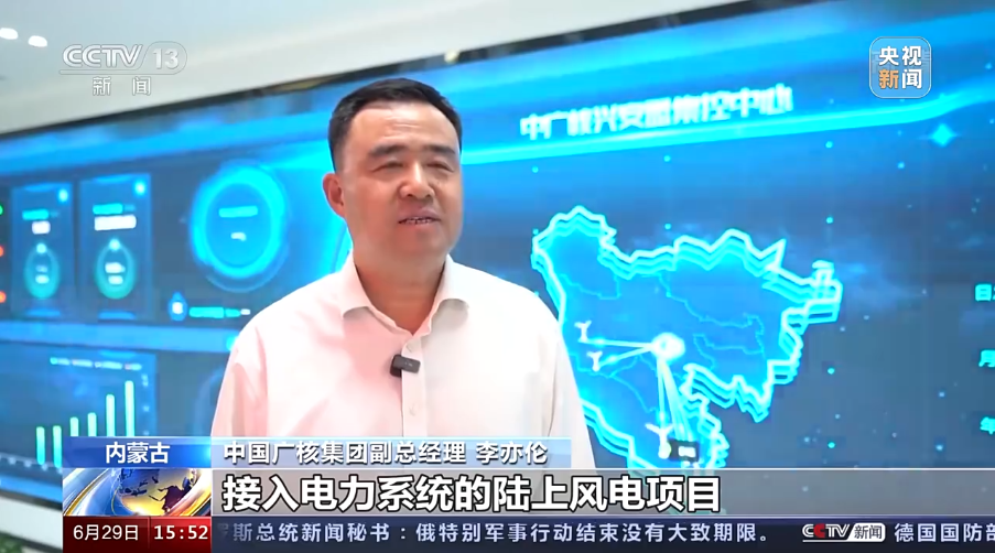 ▲央视新闻报道中广核兴安盟一期项目并网发电,中广核党委常委、副总经理李亦伦接受了央视采访