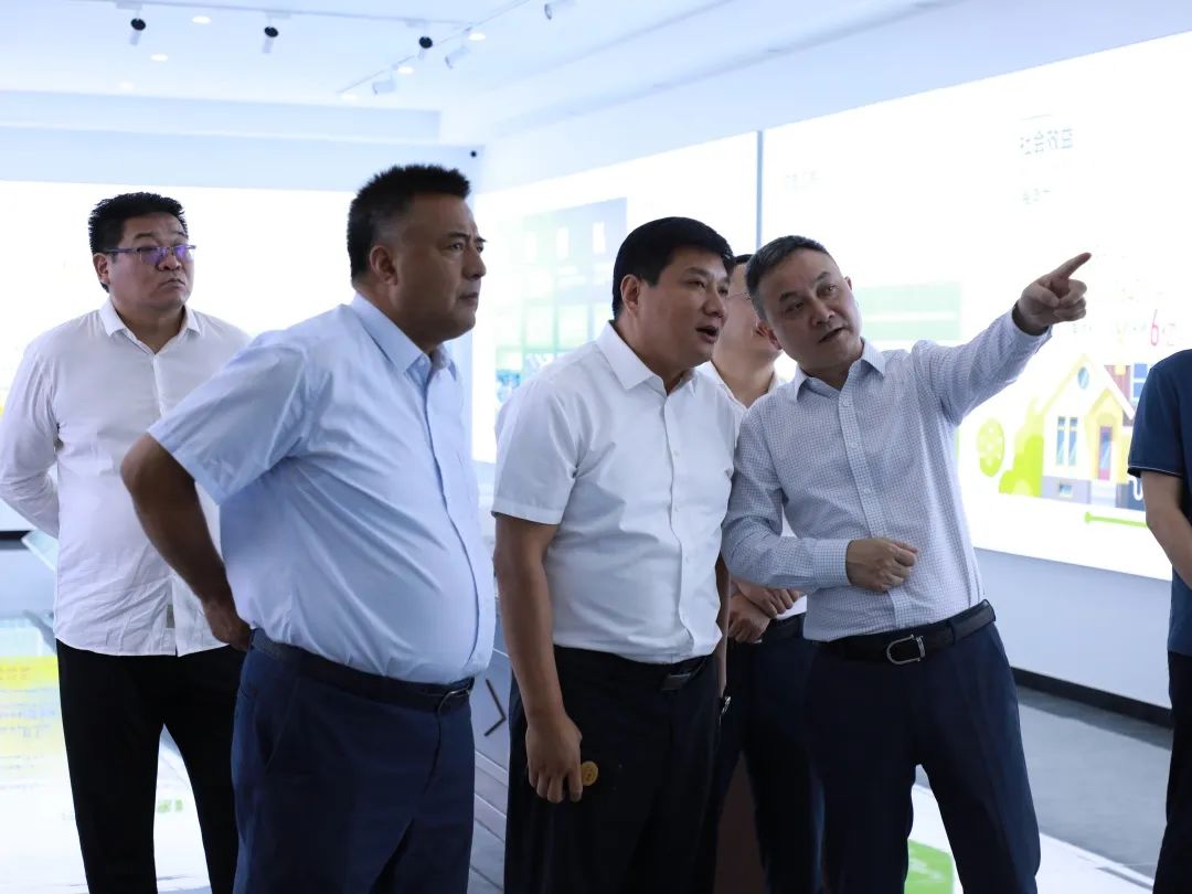 在光伏展厅,集团工会主席商笑非向来访领导介绍了光伏板块的发展历程、项目开展情况及未来发展战略部署,并详细介绍了福睿晓光逆变器与组件的性能、优势等。通过展厅大屏幕显示的后台实时数据,清晰直观地展示了分布式光伏项目在各县区的分布建设情况、电站的实时发电数据以及电站监控运维处理能力。
