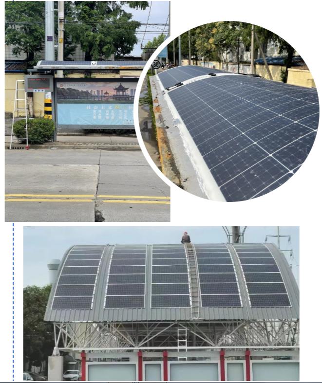 连云港公交站点项目和徐州弧形停车场项目中日托轻柔组件能够完美贴合有弧度的曲面屋顶。