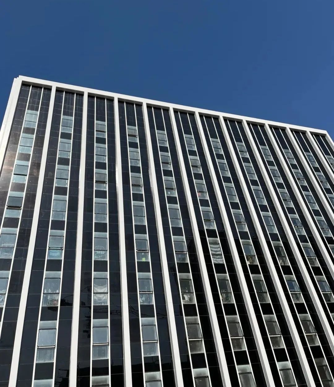 随着鄂州顺丰花湖机场正式投运,综合楼和宿舍楼立面的一期光伏幕墙也对外惊艳亮相。项目分别在综合业务楼和宿舍楼的东、西、南三个立面安装了近6000块不同尺寸、不同透光度的龙焱碲化镉光伏发电玻璃建材。