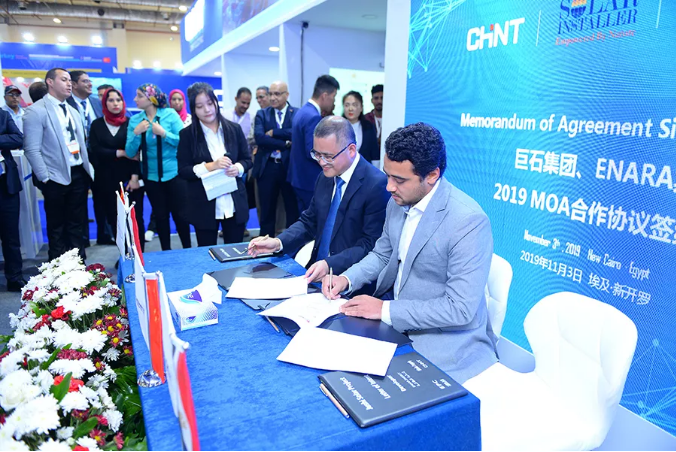 11月3日,2019埃及国际电力与新能源展在开罗国际会展中心举办。展会现场,正泰与巨石埃及、ENARA和SOLAR INSTALLER等企业共同就巨石集团7.5MW太阳能项目签署合作备忘录。