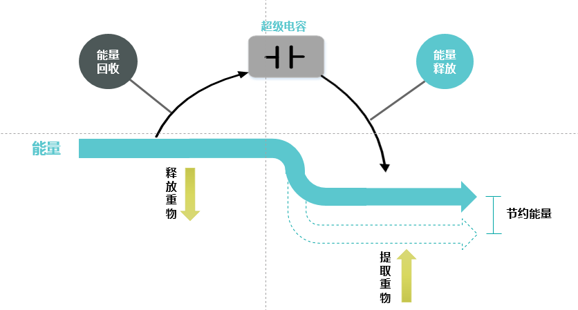 在港口各类起重机设备工作时,其起升机构在载运货物下降过程中再生制动会产生大量的能量,而这部分能量通常以热能的形式耗散掉,或将其返回至交流电网,再生能量并不能在设备内各机构间相互利用。配备了超级电容模组的起重机构,可以将在下降时所产生的势能供上升或其它负载使用,节约了大量的能源。基于超级电容储能的门机势能再回收系统,是在原有动力系统中进行配置,直流供电端与储能器件联合对工作机构供电,不改变既有设备原有工作线路,并可以满足各种工况要求。