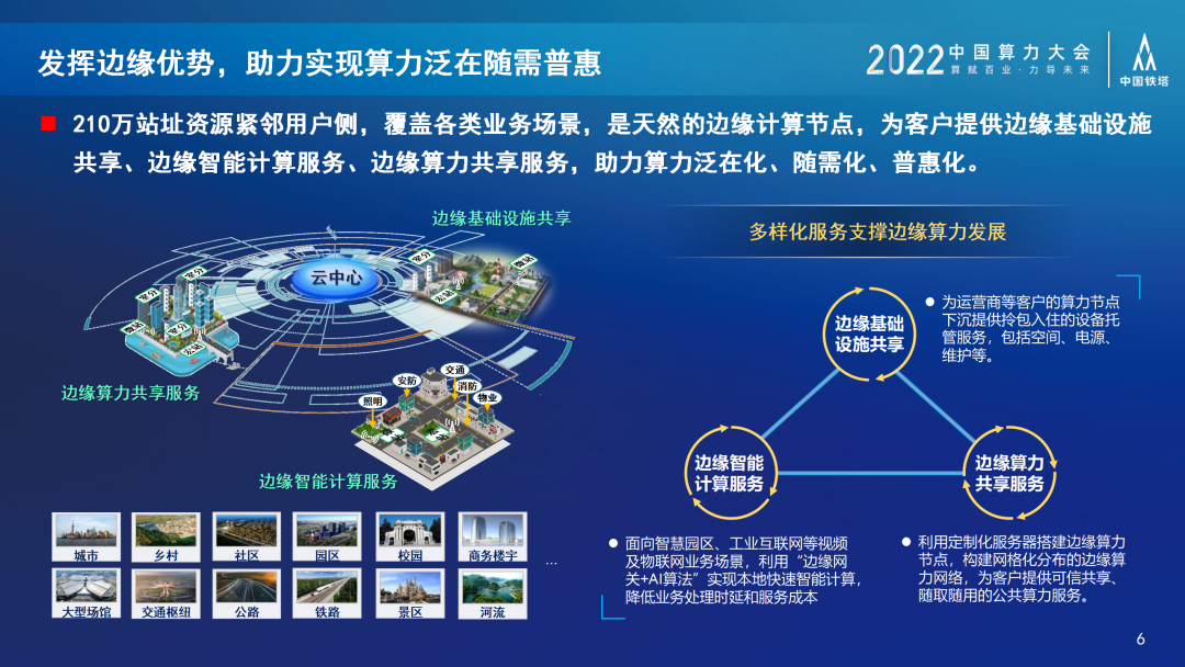 随着算力从中心走向边缘, 这210万站址资源紧邻用户侧,覆盖各类业务场景,是天然的理想边缘计算节点,可在基础设施共享、边缘智算服务、算力共享服务等方面支撑算力网络发展,推动实现算力的泛在化、随需化、普惠化。