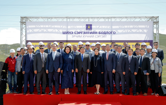 8月4日上午,“80MW/200MWh储能电站EPC项目” 举行奠基仪式,蒙古国总理奥云额尔登出席并致辞,蒙古国能源部部长塔宾贝赫、多名国会议员、国家电力调度中心总监、ADB代表等出席。中天科技国际部总经理叶智峰、中天科技国际工程总包负责人车彬以及项目团队参加了本次仪式。