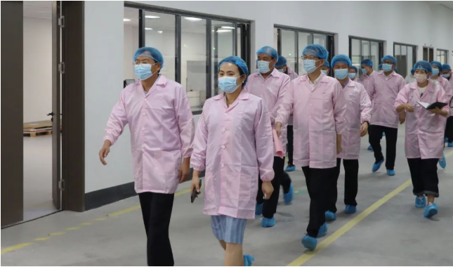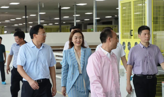 在张鸿雁及公司高管的陪同下,领导们参观了欧圣达临沂生产基地。夏军重点介绍了车间的自动化生产线、生产各环节技术原理、产线布局、产能规划及实际产值等情况,并就基地的N型TOPCon技术路线做出了详尽介绍。领导们详细了解了山东欧圣达新能源有限公司的未来规划,并给出了宝贵的建议和意见。