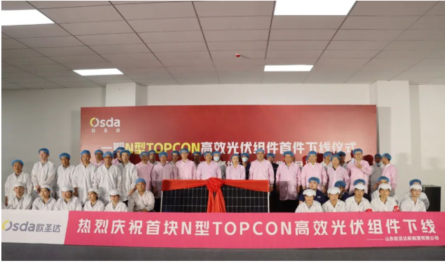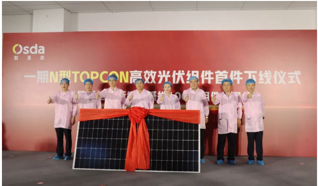 不同凡响!欧圣达临沂生产基地成功下线首块N型TOPCon高效光伏组件