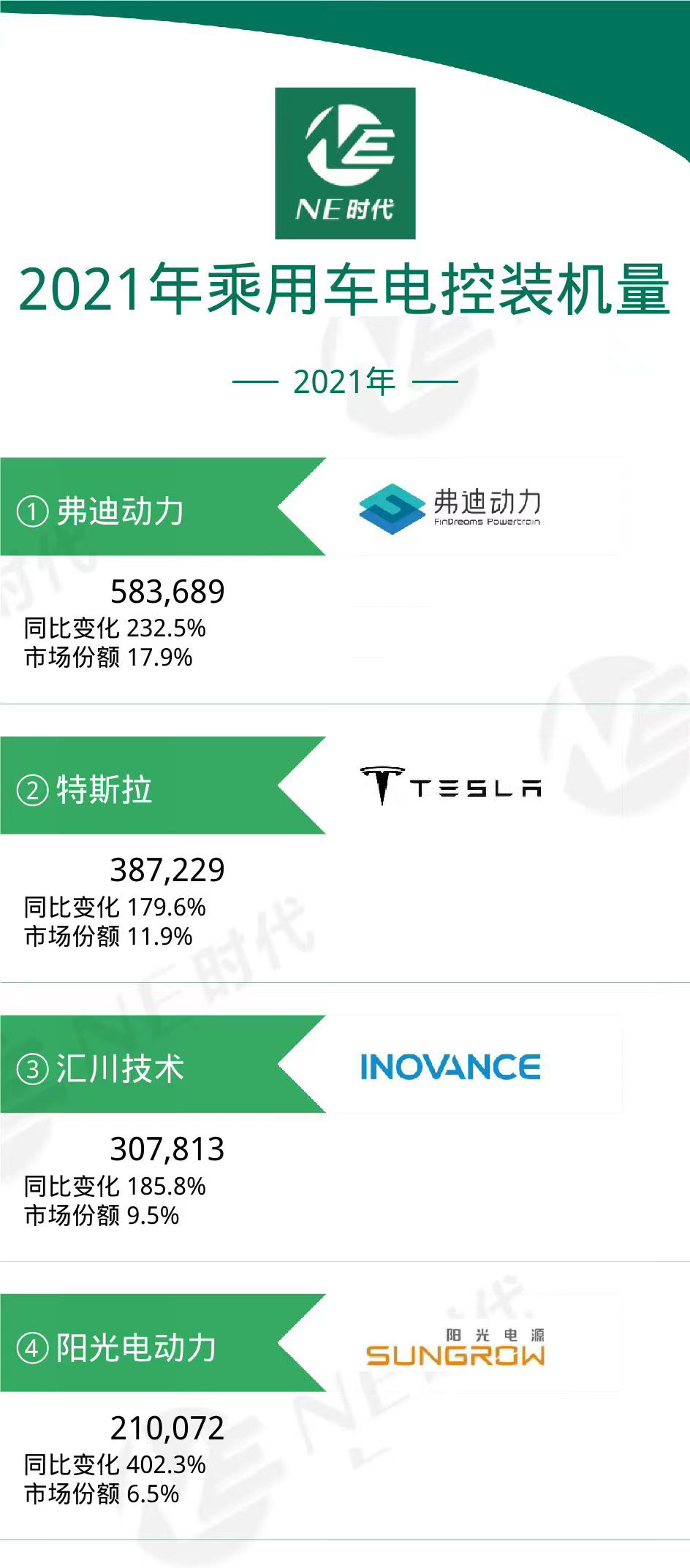 2021年新能源乘用车电机控制器装机量(来源:交强险数据,NE研究院整理)