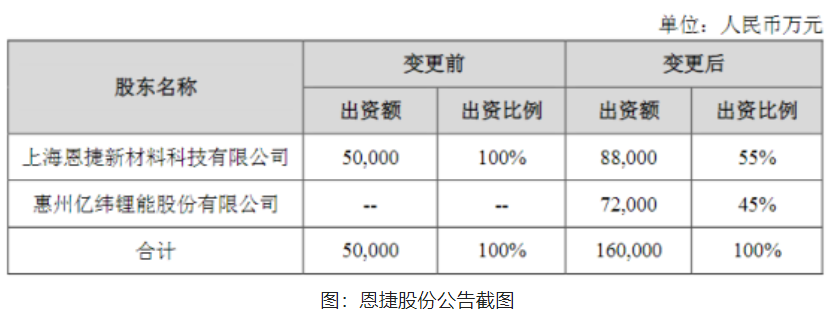 现在,合资公司湖北恩捷已完成工商登记手续,投资项目已完成项目备案。意味着亿纬锂能与恩捷股份的合作项目将进入新的阶段。