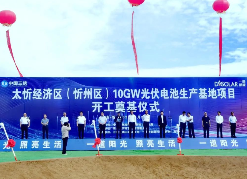 8月27日上午,由三峡集团牵头建设的10GW光伏电池生产基地项目开工奠基仪式在山西省忻州市举行。