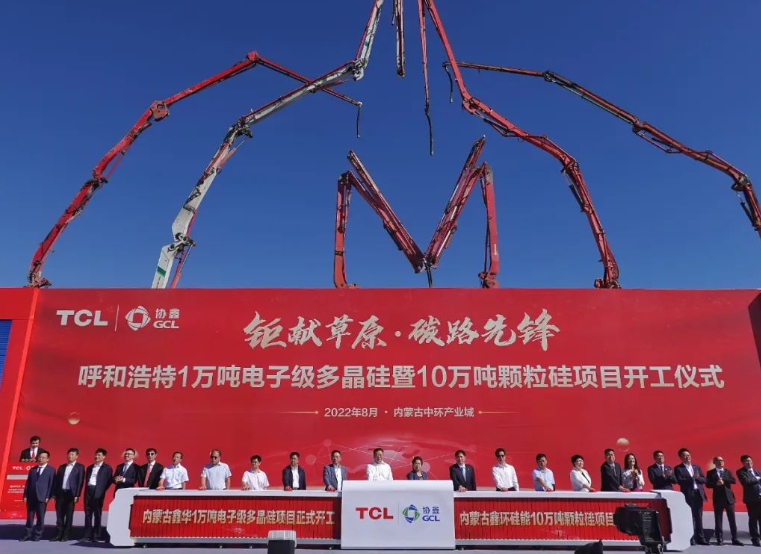 在呼和浩特,1万吨电子级多晶硅暨10万吨颗粒硅项目已于近日开工,该项目是协鑫科技与TCL合作的首个颗粒硅项目,也是协鑫布局的第四大颗粒硅项目基地。
