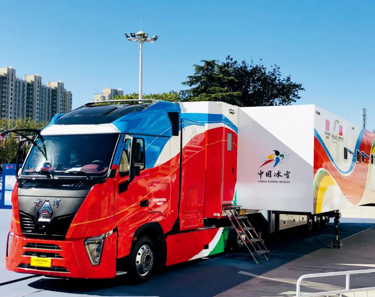 由中国重汽研发制造的中国第一辆拥有完全自主知识产权的黄河雪蜡车服务2022年北京冬奥会。
