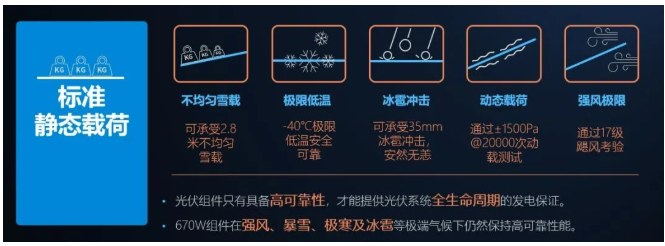 天合至尊600W+组件不仅通过了常规静态载荷测试,性能与传统组件一致。天合光能还对组件进行了五项加严测试,组件在强风、暴雪、极寒及冰雹等极端气候下,仍然保持高可靠性能,确保光伏组件在至少25年的生命周期能够正常发电,为光伏系统全生命周期发电提供坚实支撑,确保光伏电站在全生命周期内发电总量保持在较高水平。