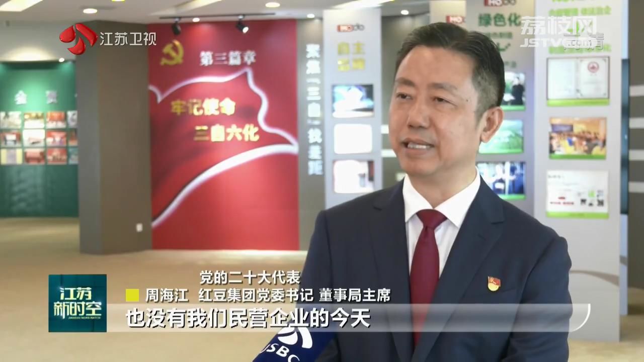 党的二十大代表,红豆集团党委书记、董事局主席周海江说,通过党建,机遇优势、人才优势、和谐优势合在一起,转变成了企业的发展优势。