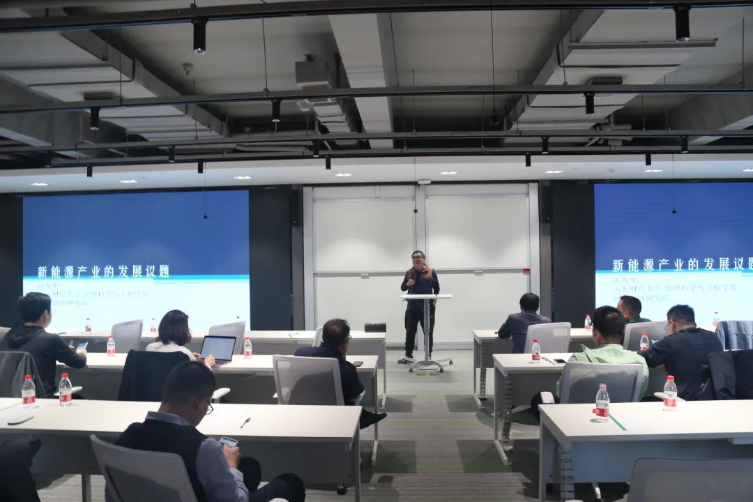 本次签约仪式的重头戏是山东大学管理学院王军教授和山东财经大学田发中教授的精彩分享,将本次签约仪式推向高潮!两位教授深入浅出,举一反三详细阐述了新能源产业的未来发展与布局,到场嘉宾纷纷表示此次收获颇丰。