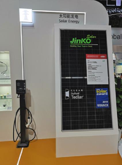 (2019年11月5日,中国上海)在第二届中国国际进口博览会,杜邦光伏及氟材料事业部携创新光伏材料产品参展,展示长期致力于推动全球可再生能源发展的成果。在展会上,基于杜邦™ Tedlar® PVF透明薄膜背板的晶科高效双面组件Swan,将为新能源汽车充电桩提供清洁高效的太阳能电力。太阳能充电桩可大幅降低能源使用费用,更有助于缓解能源和环境压力。