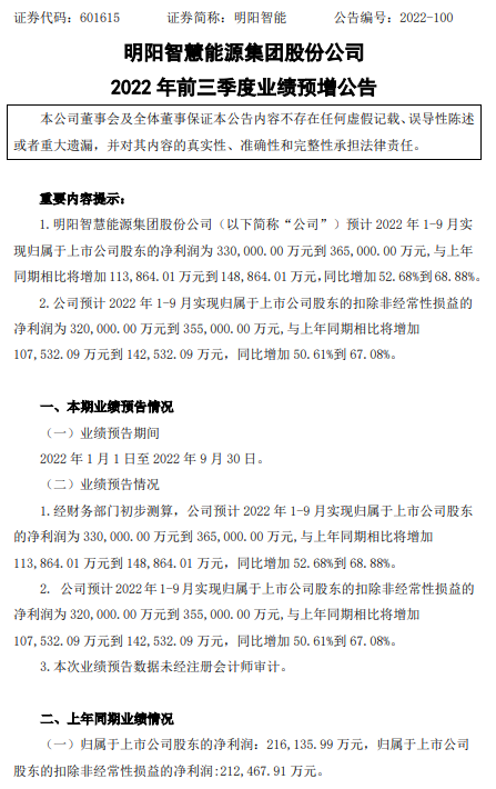 净利润33亿元~36.5亿元!明阳智能发布三季度业绩预告出炉