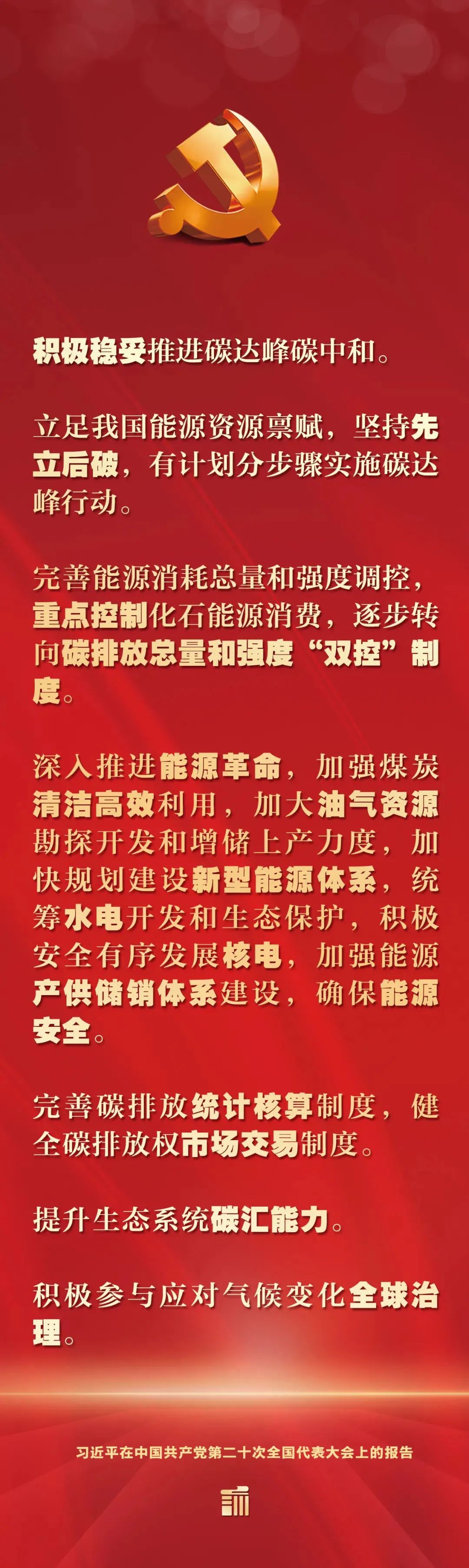 “积极稳妥推进碳达峰碳中和,立足我国能源资源禀赋,坚持先立后破,有计划分步骤实施碳达峰行动,深入推进能源革命,加强煤炭清洁高效利用,加快规划建设新型能源体系,积极参与应对气候变化全球治理”以及“确保粮食、能源资源、重要产业链供应链安全。”