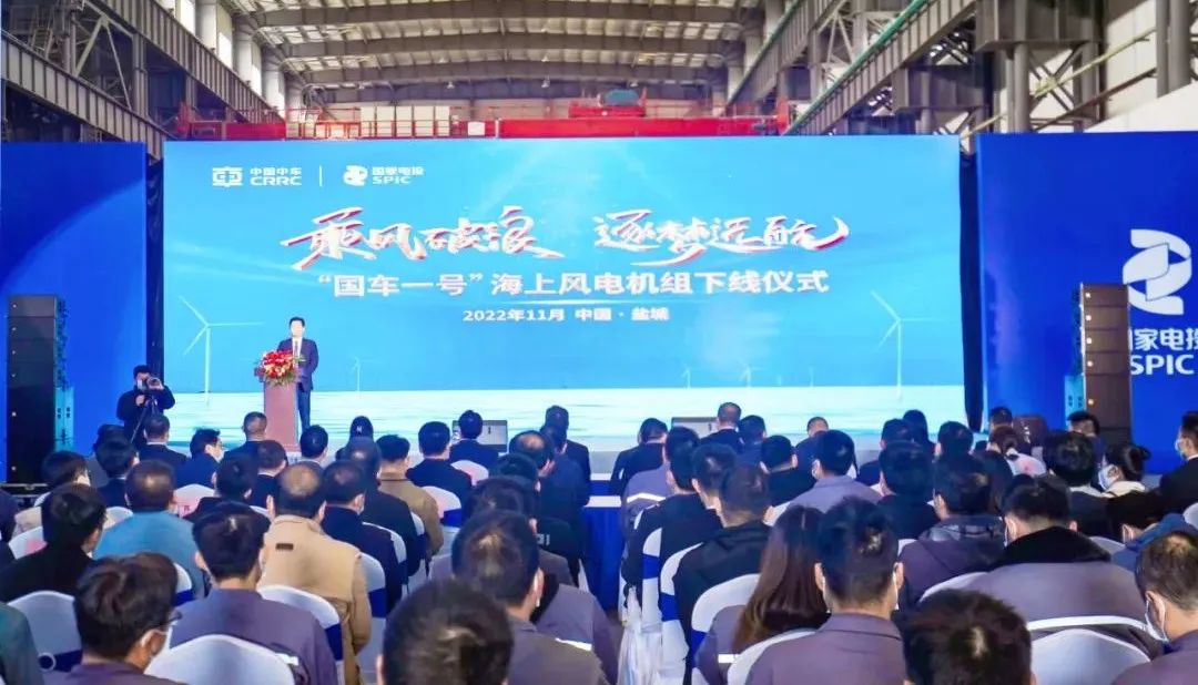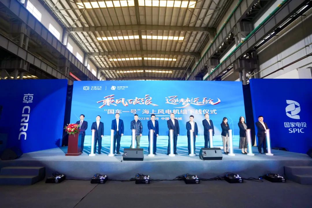 射阳县有关领导,国家电投、中国华能、中国能建、中国电建、南高齿、斯凯孚等合作伙伴,中国中车产业发展部、株洲所、株洲电机、时代新材、江苏电机及项目施工单位参加了下线仪式。