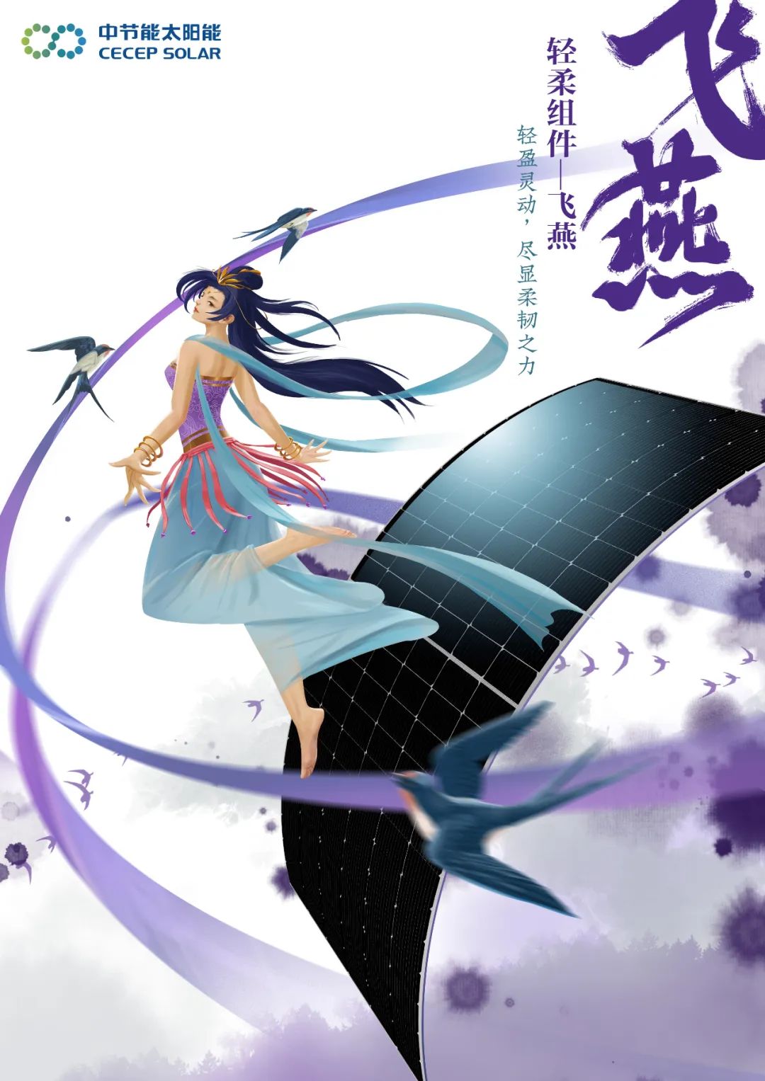 “飞燕”如赵飞燕一般轻盈优雅,在柔软和力量之间形成很好的balance。飞燕系列组件采用高分子柔性材料,大大提升了组件柔韧度,最大弯曲半径0.45m,适合有一定曲度的表面安装,可广泛应用于工商业彩钢瓦屋顶、琉璃瓦屋顶、曲面屋顶等场景。